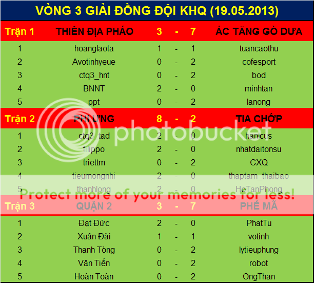 Vòng 3 tiến hành thi đấu vào lúc 9h sáng chủ nhật 19.05.2013 tại cafe Bến Quê.
